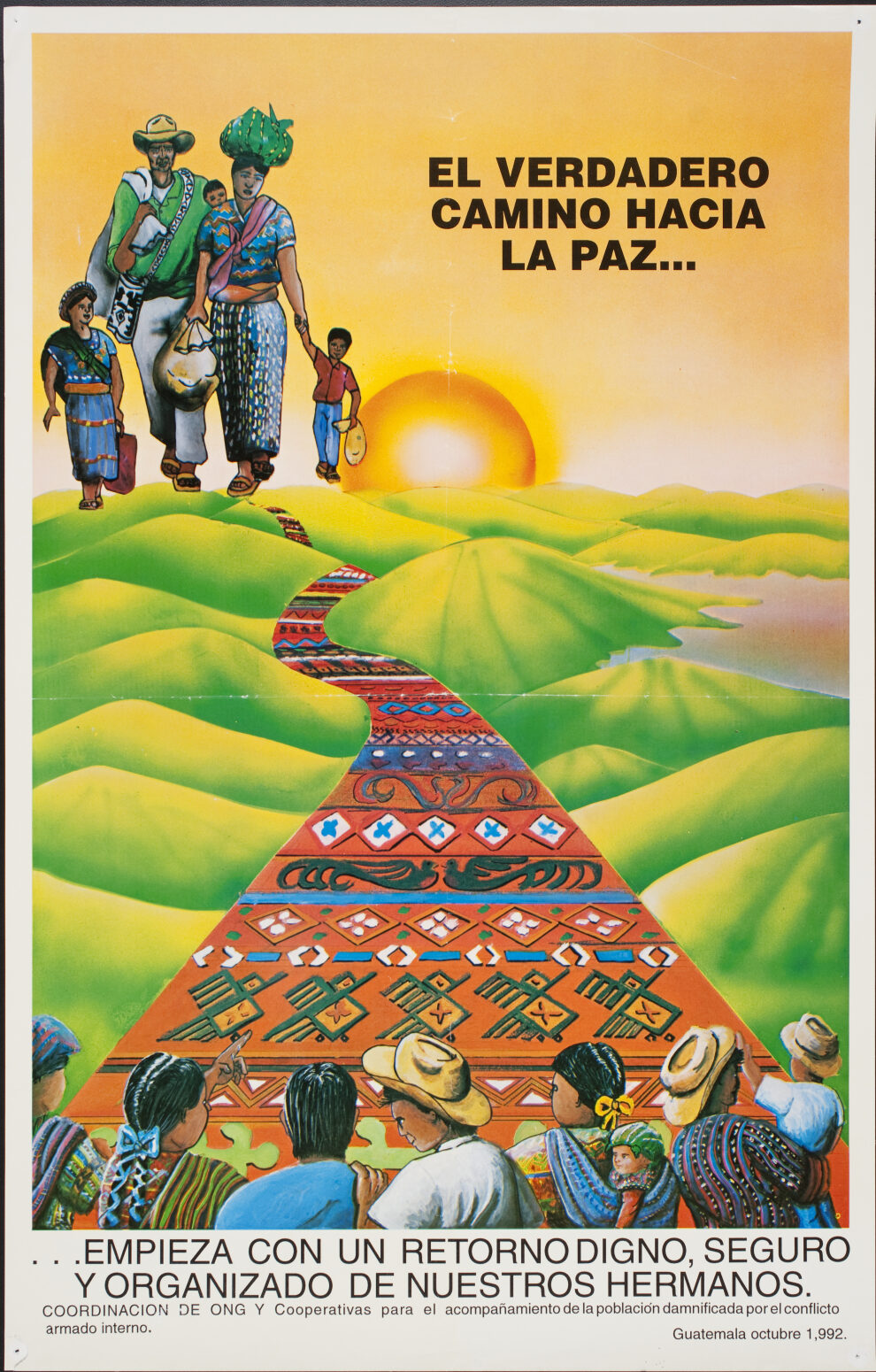 📸 Poster in support of the organized return of refugees from Mexico to Guatemala. Courtesy of Lincoln Cushing / Docs Populi and Todd Kolze / GNIB.