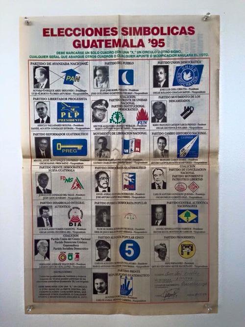 📸 1995 Guatemalan election ballot showing the symbolic ballot for presidential candidates and their parties. Photo by Soy 502.