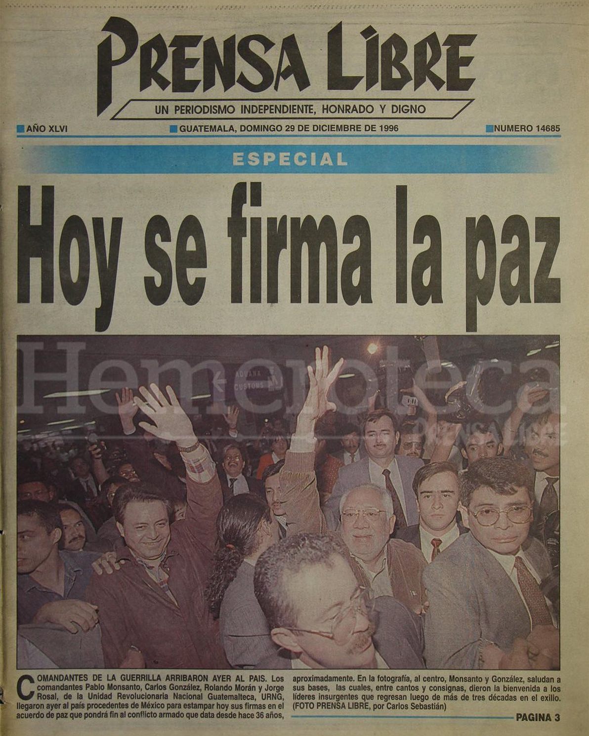 📸 Celebrating the signing of the Peace Accords — front page of Prensa Libre, Guatemala, 1996.