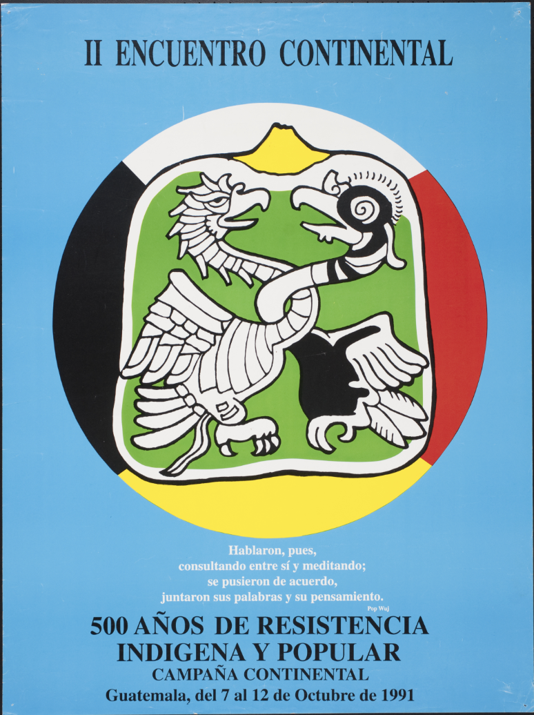 📸 Poster from the regional conference. Poster reads: Second continental conference. 500 years of Indigenous and popular resistance. Courtesy of Todd Kolze / Guatemala News and Information Bureau (GNIB)
