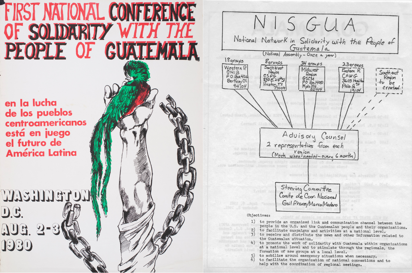 After a founding conference in 1980, existing local solidarity communities that had sprung up across the U.S. to shelter Guatemalans fleeing violence and to organize policy change came together to form the NISGUA national network to increase their political leverage and focus their advocacy potential through joint campaigns.