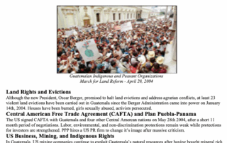 En 2022, NISGUA organizó una delegación transnacional de miembres del Congreso de EE.UU. a Honduras y Guatemala para examinar las causas profundas de la migración forzada. Les delegades se reunieron con organizaciones de sobrevivientes, Autoridades Indígenas y comunidades que resisten proyectos extractivistas, aprendiendo sobre la violencia estatal, la impunidad, la [...]
