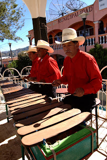 | A local marimba played for the voters in the town square. Graham Hunt Una marimba local complacía a los votantes en la plaza central. |