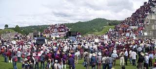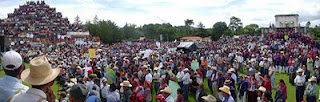 The cultural event and political demonstration at the ceremonial site Zacaleu was attended by hundreds of community members from municipalities from the departments of San Marcos, Huehuetenango, and Quiché which have held popular referenda to express their rejection of mining operations on their territory. During Anaya’s visit to Guatemala he also met with government officials in Guatemala City, with indigenous people’s groups in the municipality of San Juan Sacatepequez, and visited the site of Goldcorp’s Marlin mine in San Miguel Ixtahuacán, where local opposition to mining has grown as part of a powerful national movement in defense of natural resources and indigenous rights.