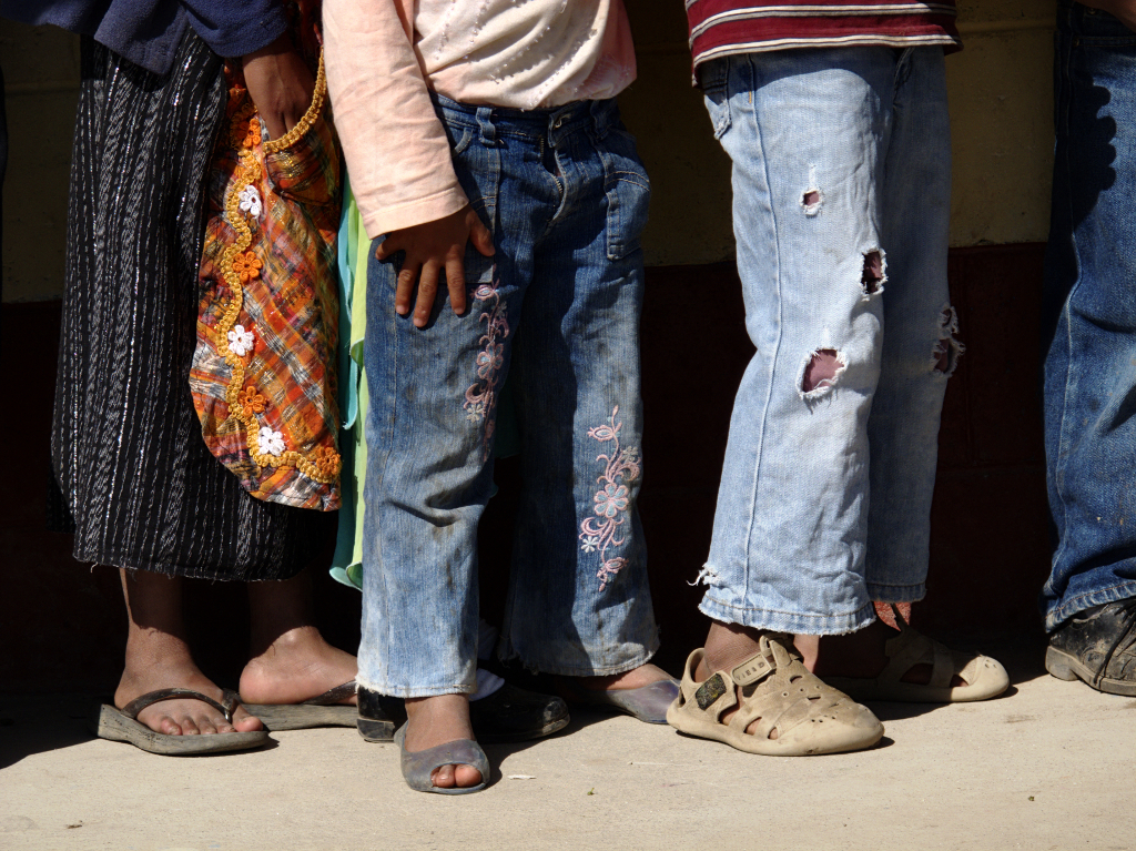 | Young voters wait their turn in Olintepeque’s urban center. Graham Hunt Votantes jóvenes esperan su turno en el casco urbano de Olintepeque.